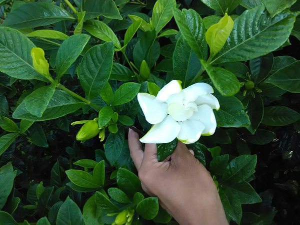 大花梔子為梔子花的變種。為茜草科梔子屬植物。為常綠灌木。單葉對生或3葉輪生。喜濕潤、溫暖、光照充足且通風良好的環境。可用扦插、壓條、分株或播種繁殖。