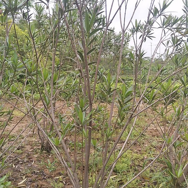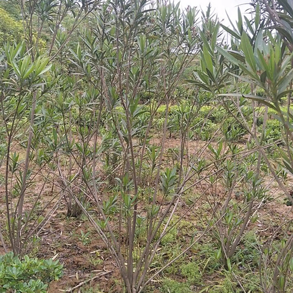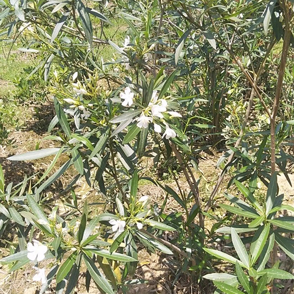 夾竹桃(學名:Nerium oleander L.)夾竹桃族夾竹桃屬常綠直立大灌木,高可達5米,枝條灰綠色,嫩枝條具棱,被微毛,老時毛脫落。葉3-4枚輪生,葉面深綠,葉背淺綠色,中脈在葉面陷入,葉柄扁平,聚傘花序頂生,花冠深紅色或粉紅色,花冠為單瓣呈5裂時,其花冠為漏斗狀,種子長圓形,花期幾乎全年,夏秋為最盛;果期一般在冬春季,栽培很少結果。