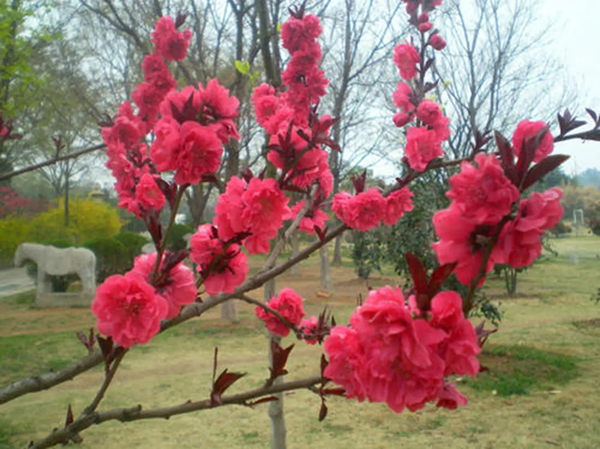 碧桃性喜陽光,耐旱,不耐潮濕的環(huán)境。喜歡氣候溫暖的環(huán)境,耐寒性好,能在零下25攝氏度的自然環(huán)境安然越冬。碧桃花朵豐腴,色彩鮮艷豐富,花型多。常見的品種有紅花綠葉碧桃、紅花紫葉碧桃,白紅雙色灑金碧桃等多個變種。具有很高的觀賞價值,在小區(qū)、公園、街道隨處可見的美麗植物。原產(chǎn)中國,分布在西北、華北、華東、西南等地。世界各國多有引種栽培。