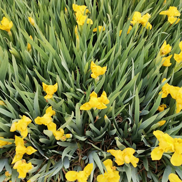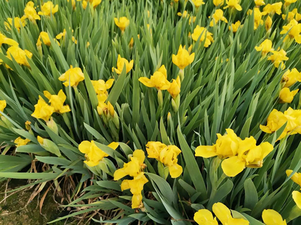 黃花鳶尾(學名:Iris wilsonii C. H. Wright):多年生草本,植株基部有老葉殘留的纖維。根狀莖粗壯,斜伸;須根黃白色,少分枝,有皺縮的橫紋。葉基生,灰綠色,寬條形,有3-5條不明顯的縱脈。花莖中空,高50-60厘米,有1-2枚莖生葉;苞片3枚,草質,綠色,披針形,內包含有2朵花;花黃色,直徑6-7厘米;外花被裂片倒卵形,具紫褐色的條紋及斑點,爪部狹楔形,內花被裂片倒披針形,花盛開時向外傾斜。蒴果橢圓狀柱形,6條肋明顯,頂端無喙;種子棕褐色,扁平,半圓形。花期5-6月,果期7-8月。