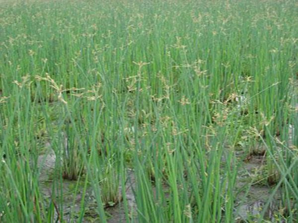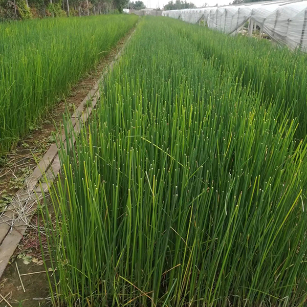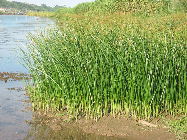 水蔥(學(xué)名:Scirpus validus Vahl ),匍匐根狀莖粗壯,具許多須根。稈高大,圓柱狀,最上面一個葉鞘具葉片。葉片線形。苞片1枚,為稈的延長,直立,鉆狀,常短于花序,極少數(shù)稍長于花序;長側(cè)枝聚繖花序簡單或復(fù)出,假側(cè)生;小穗單生或2-3個簇生于輻射枝頂端,卵形或長圓形,頂端急尖或鈍圓,具多數(shù)花;鱗片橢圓形或?qū)捖研?,頂端稍凹,具短尖,膜質(zhì);雄蕊3,花藥線形,藥隔突出;花柱中等長,柱頭2,罕3,長于花柱。小堅果倒卵形或橢圓形,雙凸?fàn)睿儆腥犘危L約2毫米。花果期6-9月。