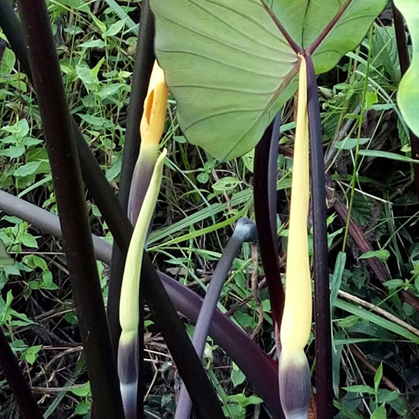 紫芋(拉丁學(xué)名:Colocasia tonoimo Nakai),是天南星科芋屬植物,各地均有栽培。葉片盾狀,長40-50厘米,寬25-30厘米;花黃色、頂部帶紫色,花期7-9月。塊莖、葉柄、花序均可作蔬菜。